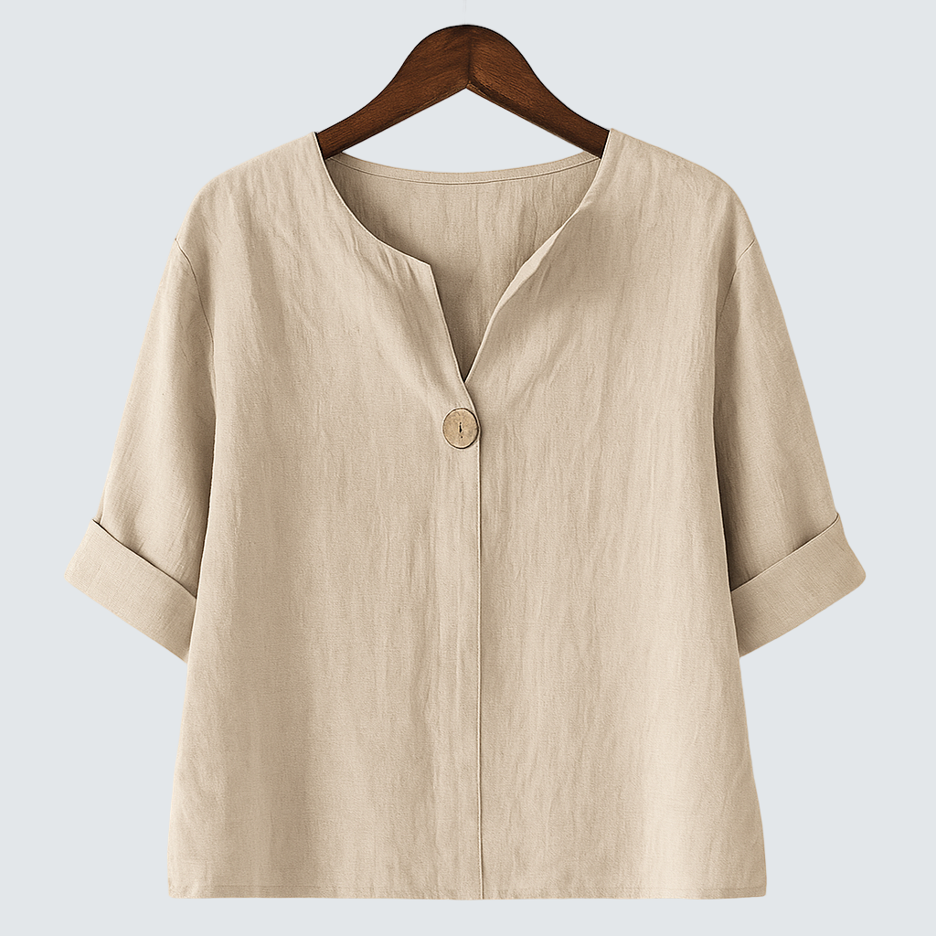 Elena™ – Lněná košile s V-výstřihem a ležérní elegancí