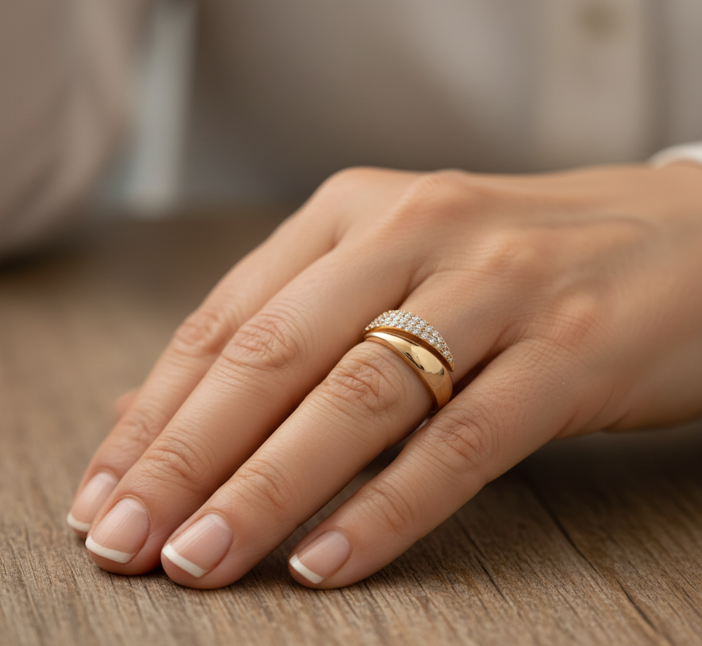 Elegantní zlatý prsten zdobený třpytivými kameny