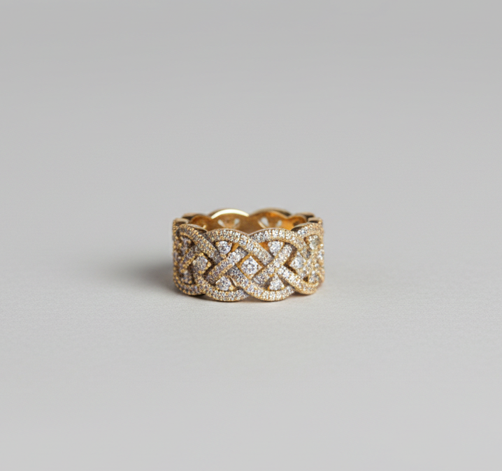 Krista | Vintage pletený prsten s kubickou zirkonií