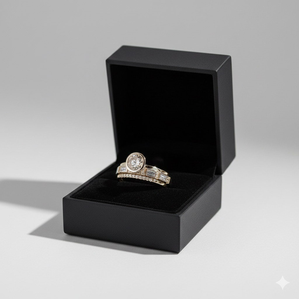 Sada zlatých krystalových prstenů
